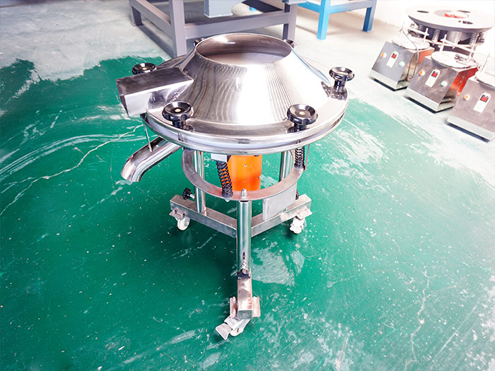 450過濾篩——直徑為450mm,由電機驅(qū)動重錘激振,篩體產(chǎn)生水平、垂直、傾斜的三次元運動,使含水物料在篩網(wǎng)上被拋起并由中央向外旋轉(zhuǎn)擴散到出料口排出,含水物料在篩網(wǎng)上面的運動中,細小顆?;蛞后w透過篩網(wǎng),通過選擇安裝相應(yīng)的篩網(wǎng)和篩網(wǎng)層數(shù)使物料完成篩選分級或過濾,分選出的物料由各自的出料口分別自動排出。是一臺單層篩分和過濾使用的振動篩,被各個廠家和用戶叫做液體專用振動篩,因為機身小的原因,所以它的處理量不多,適用于小產(chǎn)能要求。