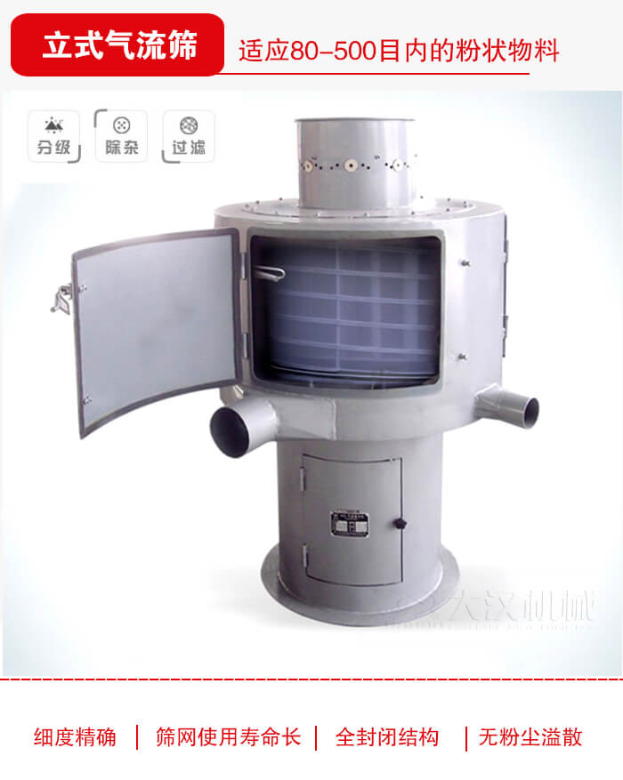 簡述:立式氣流篩采用空氣作動能作業(yè)原理,篩分效率達(dá)95%以上,產(chǎn)量是振動篩的5-10倍