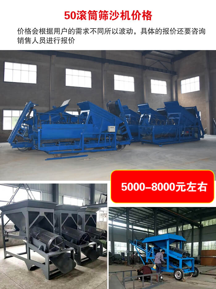 1,50滾筒篩沙機(jī)可進(jìn)行定制改造服務(wù)例如:配有給料機(jī),皮帶輸送機(jī)等設(shè)備,所以價格會根據(jù)用戶的需求不同所以波動,具體的報價還要咨詢銷售人員進(jìn)行報價。